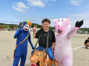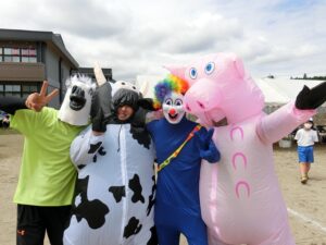 子供たちと一緒に踊ったり本気でゲームをしたり、お昼には新生酪農様からおいしい牛乳の差し入れを、総務部の皆さんからはアイスクリームの差し入れを頂いたりと、そのひとつひとつに込められた願いは「子供たちに楽しい思い出を!」のただひとつです。お昼には総務部の皆さんがおにぎりと焼きそばを儲けなしで販売して下さいました。お弁当を持ってこなかった会場の方のお役に立ちたいという思いからです。さすがに400個ずつは多すぎたようでどうなることかとヒヤヒヤしましたが、「お願いします!買って下さい!助けて下さい!」というアナウンスに応えて、沢山の方が山ほどまとめ買いをして下さいました。これも箒根学園保護者の方々の優しさだと思いました。