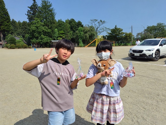 初めてのイベントなのでのぞきに行ってみると、人出が多くあって大盛況でした。会場に到着したのは終了1時間前くらいでしたが、本校の子供たちにもたくさん会いました。お昼前は校庭の6割くらいが車で埋まるくらいすごい人出だったそうです。