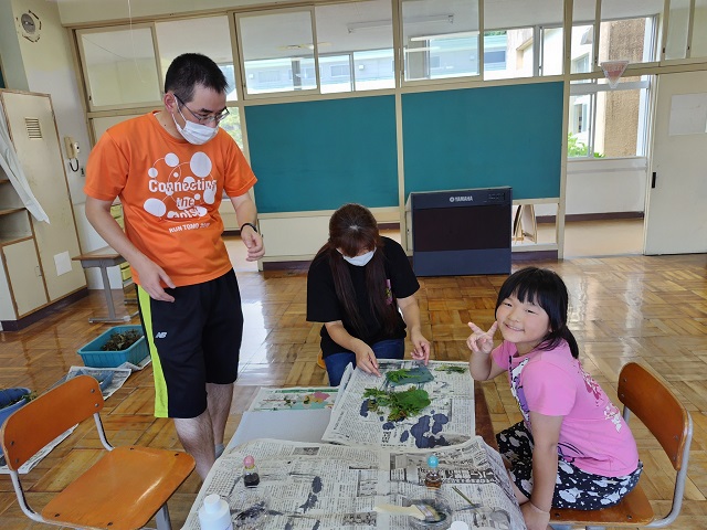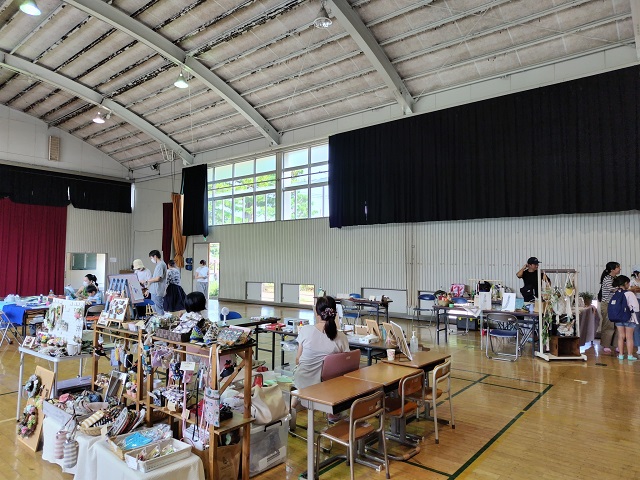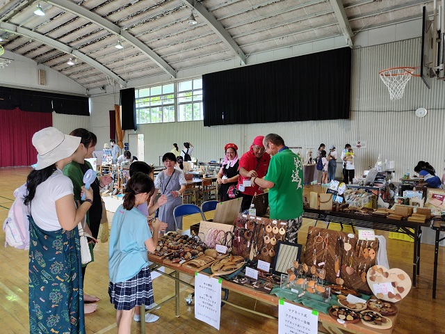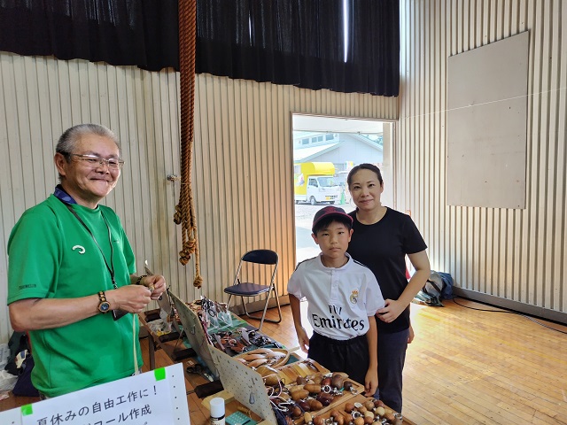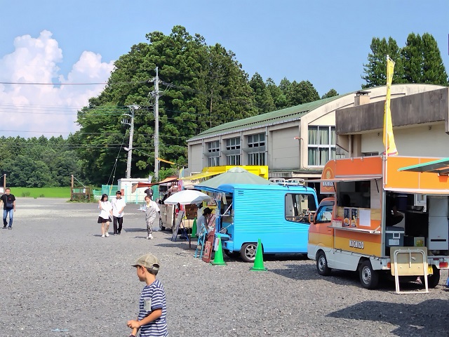 教室や体育館を使って様々な工作ブースなどが設置され、沢山の親子が一緒に作品作りを楽しんでいました。校舎の後ろ側にはキッチンカーも来ていて、子供たちがかき氷などを味わっていました。