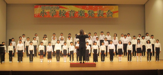昨日までの温かさが嘘のように、今日は朝から大荒れでした。そのような中でしたが、4,5年生全員からなる前期課程合唱団は市の音楽発表会に元気いっぱい出かけました。