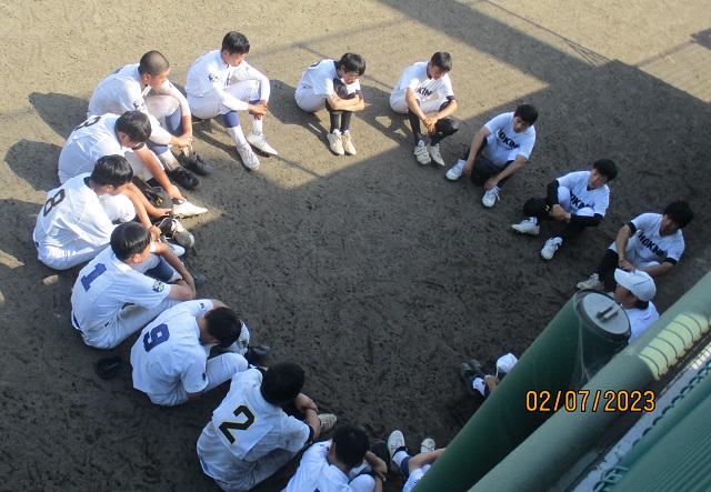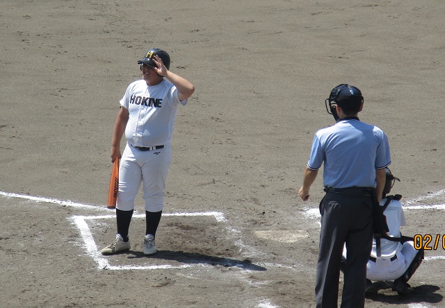 次は準決勝戦で、地区大会優勝経験のある強豪厚崎中が相手です。立ち上がりから長打を打たれて苦しい戦いとなりましたが、ランナー満塁のピンチにも冷静に対応して中盤では4対4の同点となりました。その後、長打を放って3点リードで最終回を迎えました。このまま行けるのではないかと誰もが思ったはずですが、勝負はやはり甘くはありませんでした。エースも全力で素晴らしい投球を行いましたが最終回の猛攻撃に遭い、一気に5点を奪われてさよなら負けとなりました。選手も応援団もしばし呆然としましたが、強豪を相手に最後まで戦い抜いた選手達には爽やかな風が吹いていました。