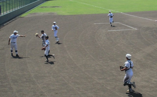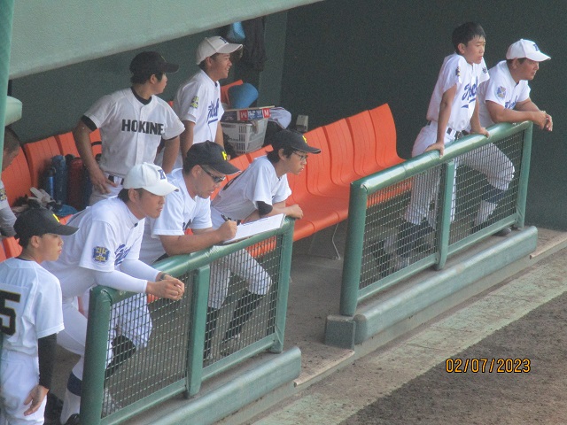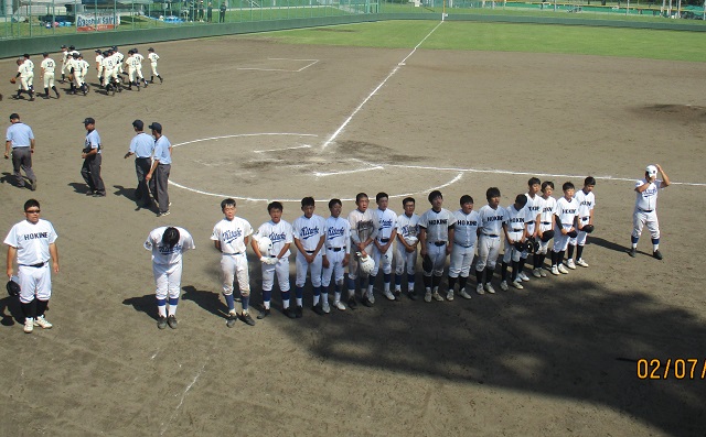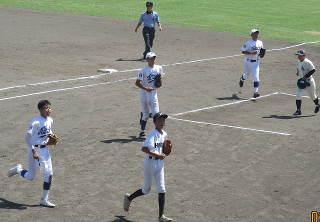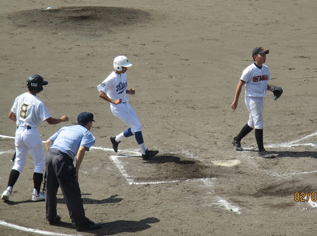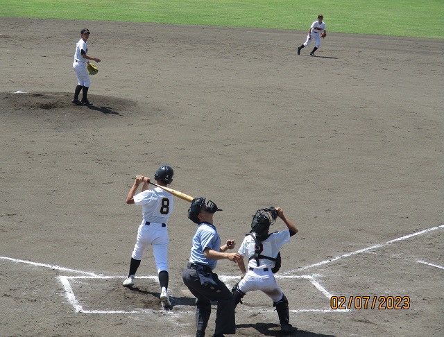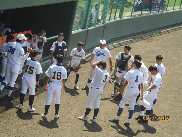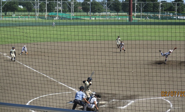 今日は少年野球の2日目です。朝から真夏の太陽がじりじりと照りつけ、選手達も応援団も暑さとの戦いとなりました。第1試合は大田原中学校が相手です。投手陣の好投がつながり、チャンスではタイムリーヒットやホームランが出て2点差で勝ち上がることが出来ました。なかなかの好ゲームです。