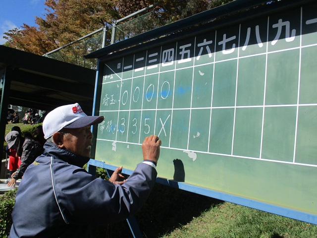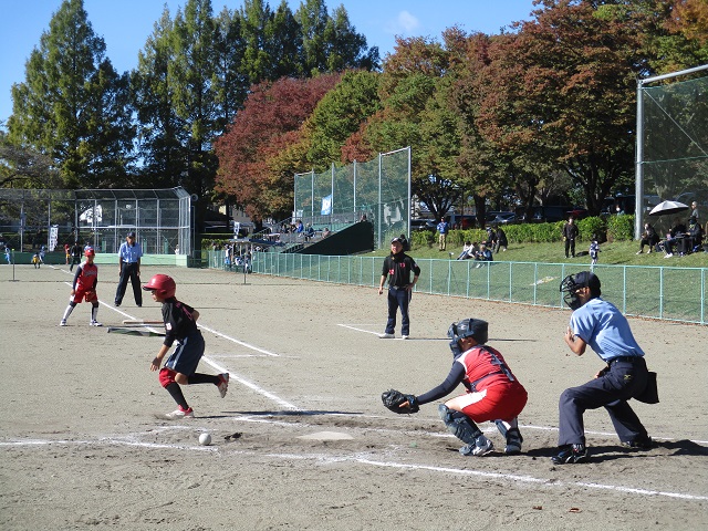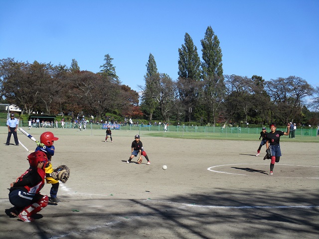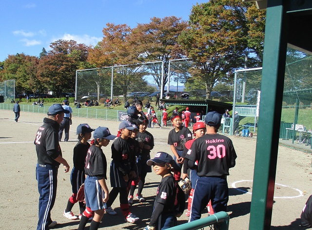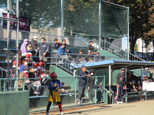 今日は秋晴れの空の下、小学生ソフトボール県大会2日目を迎えました。箒根JSBCは昨日の初戦、2回戦と接戦をものにして、準決勝戦へと這い上がることができました。初戦が山場だと言われていたので、初日の2試合を苦しみながら乗り越えられたことは、チームとしての大きな成長につながったはずです。会場に着くとどこから見ても一目で分かるほどの大応援団が試合を見守っていました。