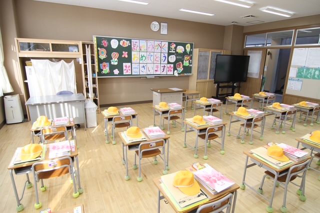 入場は6年生のお兄さん、お姉さんたちと手をつないで入場。一人ひとりの名前が呼ばれ、元気な返事が体育館に響きました。