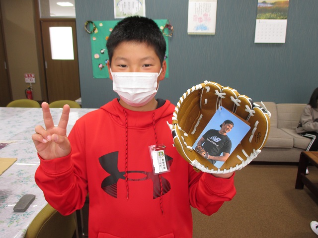 箒根学童(野球)のエースのW君が大谷グローブを見に来ました。さすが、絵になっていますね!