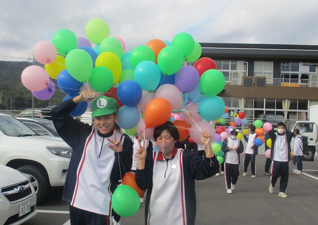 バルーンを受け取った子供たちは、満面の笑みで校庭に向かいました。