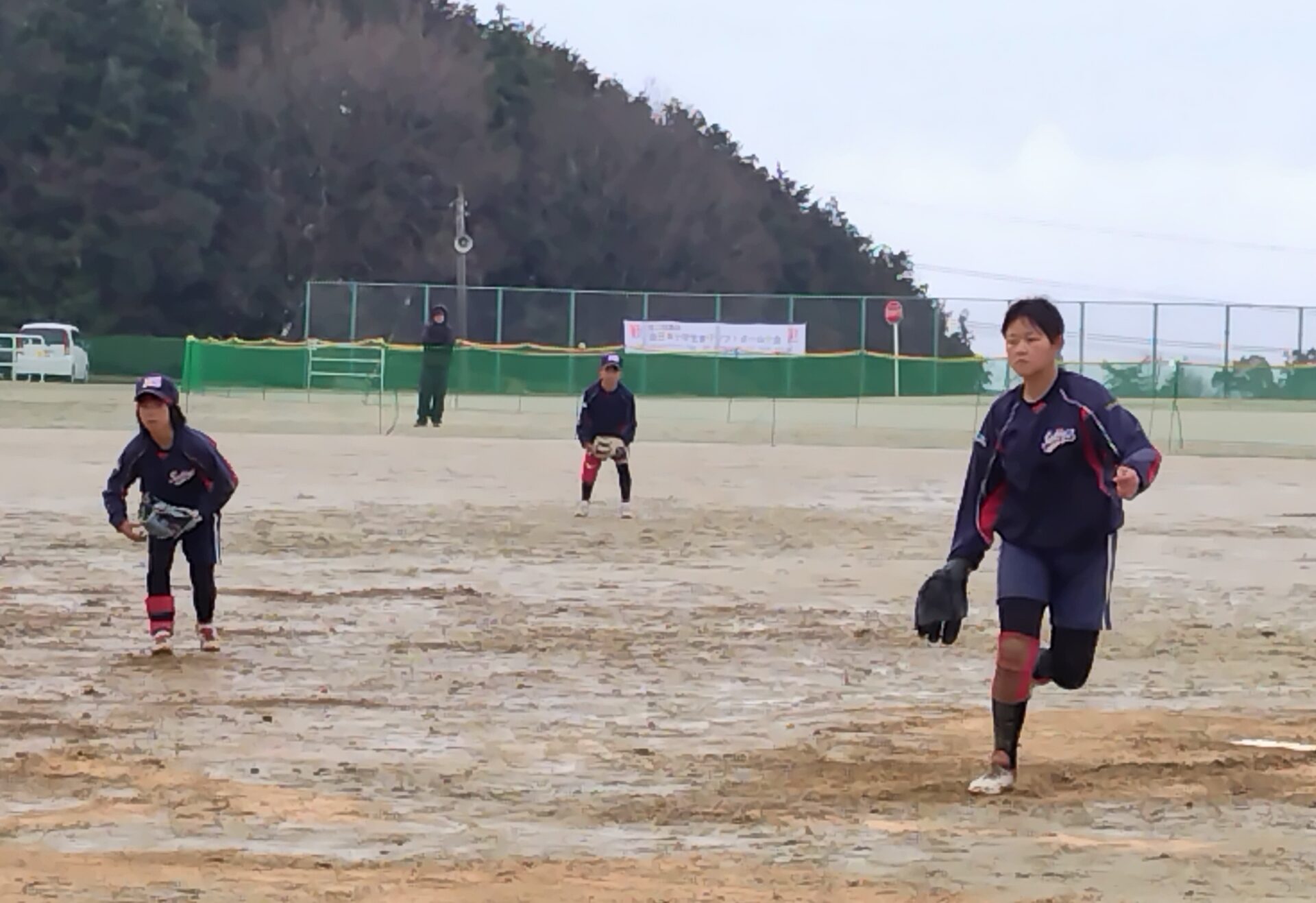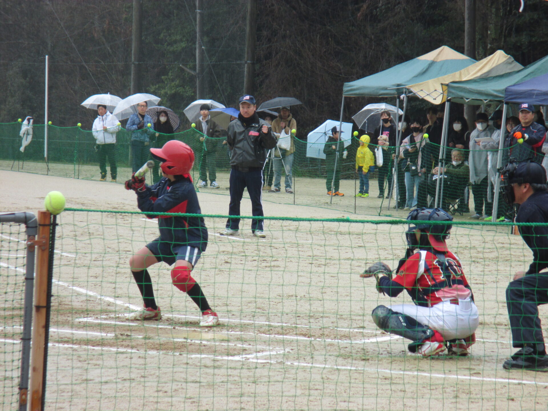 小雨が降る中でのプレイとなり、速球が得意のエースがなかなか力を発揮できません。奈良県の代表チームを相手に苦戦する場面が何度かありました。