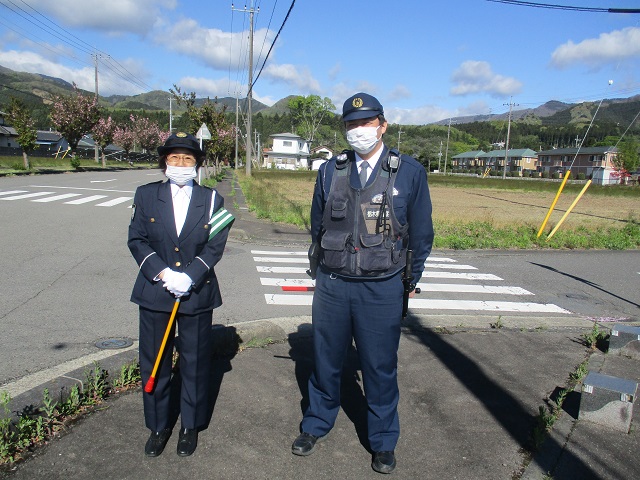 今日は朝から良く晴れました。地域の駐在所のお巡りさんと交通指導員の方が登校指導をしてくださいました。「お巡りさんがいると効果は抜群です。自動車はスピードを落としてくれますし、自転車の子供たちもみんな横断歩道を歩いてわたってくれます。」と交通指導員さんが教えて下さいました。毎朝、子供たちのためにありがとうございます。