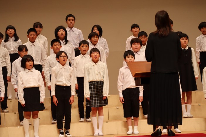 2024.10.29 全校生 那須塩原市小学校音楽発表会10月29日(火) 管理者学校 10月29日(火)に大正堂くろいそみるひぃホールにて、那須塩原市小学校音楽発表会が開催され、市内の小学校および義務教育学校が参加し、合唱や合奏を披露しました。箒根学園からは4・5年生が参加し、一生懸命に練習を重ねた『大切なもの』を合唱で発表しました。心のこもった歌声が観客に感動を与え、素晴らしい合唱となりました。