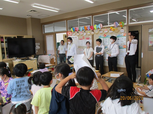 学校には国の省庁から若手の官僚の皆さんが視察に来られました。市役所職員として2日間様々な研修を行い、最後が本校の視察でした。元気いっぱいに挨拶をする子供たちに、箒根学園が明るくて温かい学校だと感じたとの感想をおっしゃって下さいました。