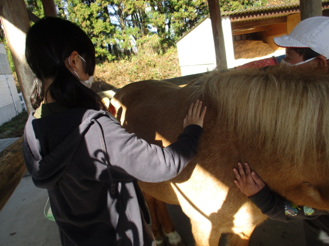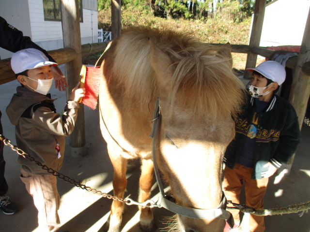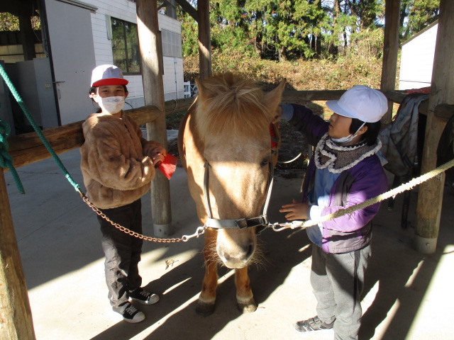 2023.11.29 全校生 馬と友達になったよ 管理者学校 今日は、青木のホースガーデンに行ってきました。 馬は、とても臆病な生き物です。厩務員さんと次の約束をして活動開始です。①大きな声を出さないこと②走ったり飛び跳ねたりしないこと③馬の後ろに立たないこと お馬さんは温かいね。優しくブラッシングをしてあげたら、どんぐりちゃんは、うっとりと気持ちよさそうです。 どんぐりちゃん、みんなを乗せてくれてありがとう。お疲れ様でした。にんじんをどうぞ。 #特別支援