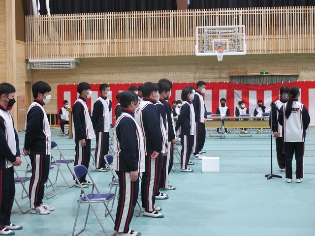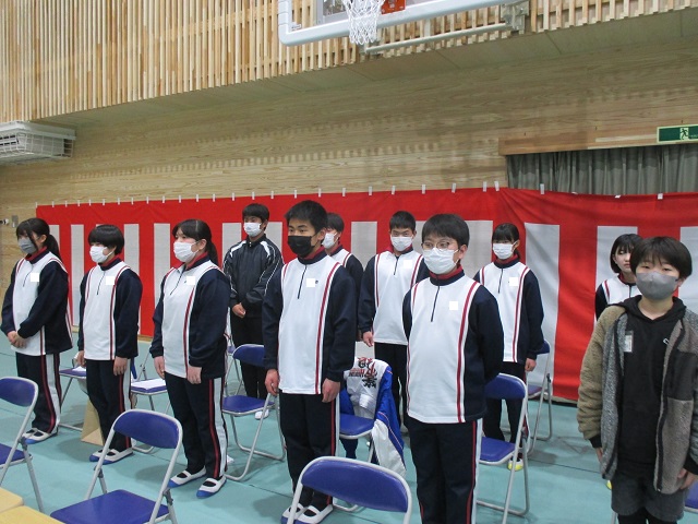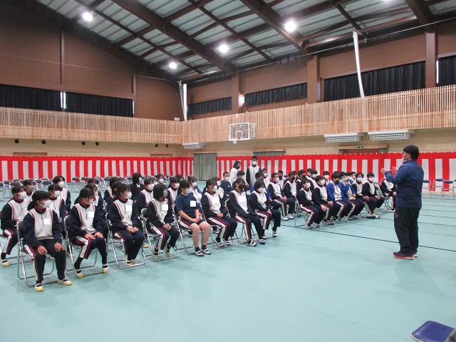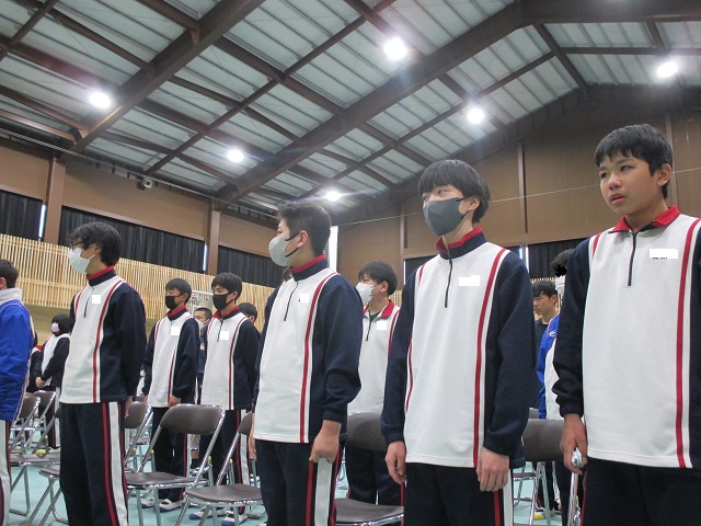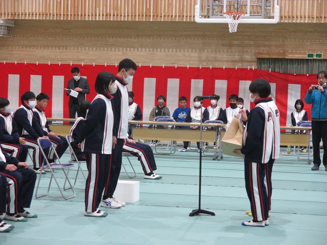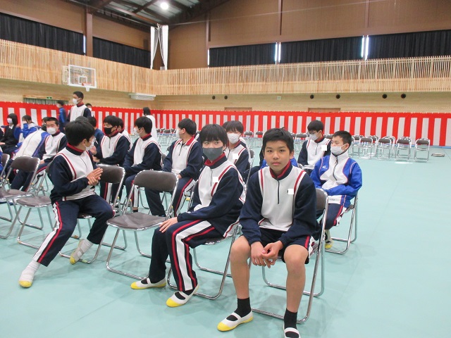 午後には9年生を送る会がありました。8年生をリーダーに実行委員会が中心となって準備を進めてきました。体育館のフロアにはシートが敷き詰められ、市教委の御配慮で購入していただいた紅白幕も会場の雰囲気を盛り立てています。