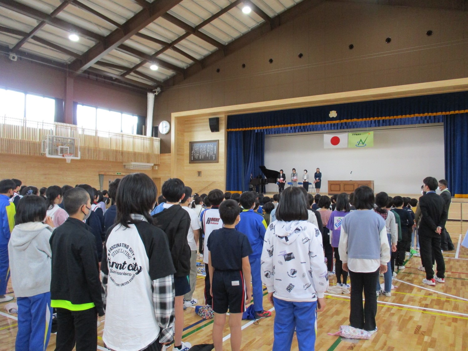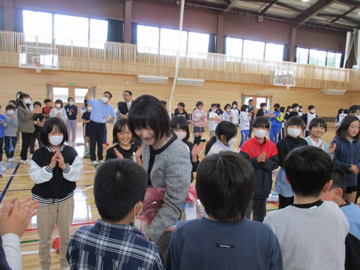4月19日(金)、本校体育館において、昨年度までいた先生方を招いて離任式が行われました。児童生徒から転出された先生方へ、メッセージや花束を贈り、感謝の意を伝えました。先生方からもお話をいただきました。本校児童生徒に向けて、今までの思い出話やこれからの学校生活のアドバイスを話してくれました。最後に全児童生徒たちで花道を作ってお見送りをしました。