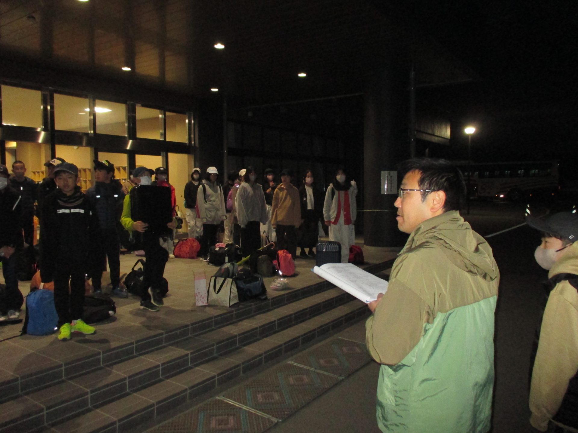 2024.11.14 全校生 6年生旅行① 出発しました! 管理者学校 今日から2日間、「6年生旅行」が行われます。 まだ暗い中でしたが、出発式を行い、元気に出発しました。 楽しい思い出をたくさん作ってくださいね! 保護者の皆様、早朝より準備等、ありがとうございました。 #6年生