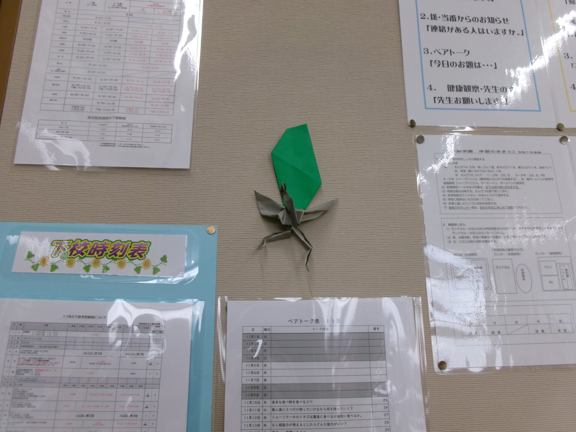 最初はお互いに頑張ったことをたたえるメッセージを書いた手紙を宝探し方式で探し出すものです。2教室に分かれて手紙を隠し、探しあいました。見つけた後はもらった手紙を見て微笑んでいました。