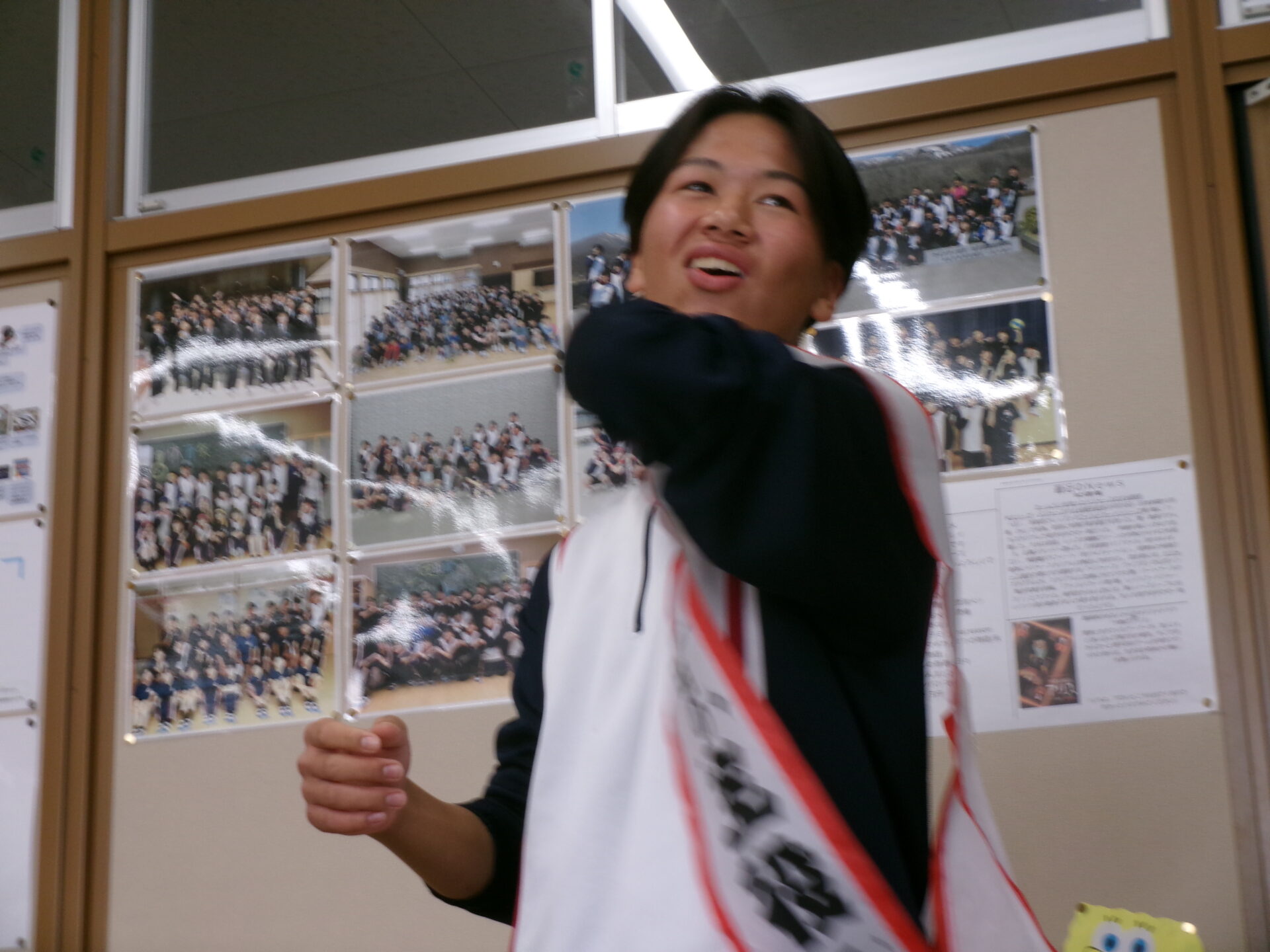その後は、タスキを使ってハンカチ落としのようなゲームをしました。タスキを渡された人は今年度頑張ったことを発表していました。駅伝のことや実行委員をしたこと、テスト勉強に打ち込んだことなど、様々な頑張りが発表され、みんなで拍手をしてたたえあいました。