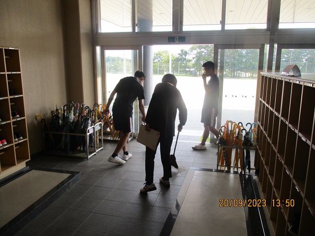 午後には避難訓練がありました。1年生から9年生までが真剣な面持ちで校庭に集合し、整列するまでにかかった時間は2分55秒でした。後期課程の先輩達が素晴らしい態度で臨んだので、前期課程の子供たちもそれを見習ったようです。小中一貫の義務教育学校の良さを改めて感じました。みんなが教室に戻った後、9年生の子供たちが昇降口や廊下を進んで掃除してくれました。なんて良い子達なんだろうかとうれしくて、たまった疲れが吹き飛びました。9年生のみんな、いつもすてきな模範を示してくれてありがとう。感謝していますよ。