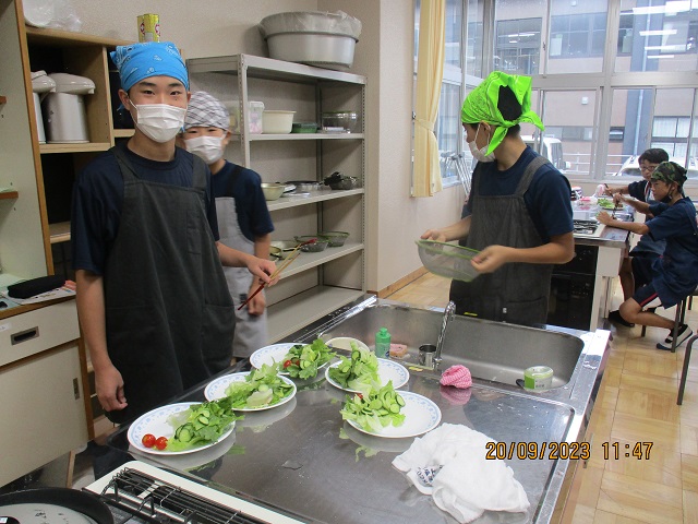 今日の3,4時間目は8年生が今年初めて調理実習を行いました。メニューは何と煮込みハンバーグ!さすが後期課程だけあって、手の込んだものを作ります。