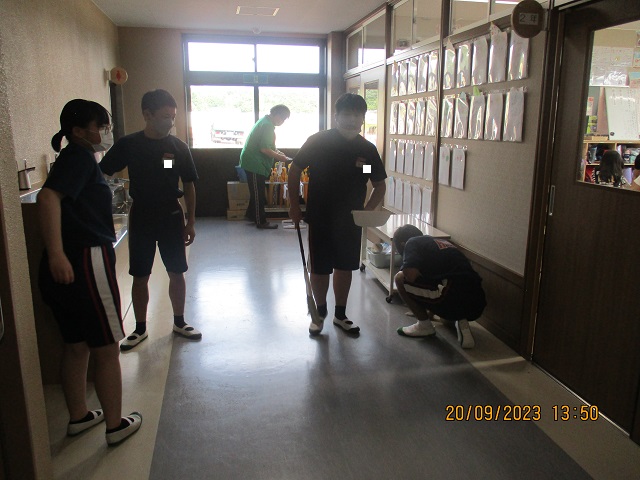 午後には避難訓練がありました。1年生から9年生までが真剣な面持ちで校庭に集合し、整列するまでにかかった時間は2分55秒でした。後期課程の先輩達が素晴らしい態度で臨んだので、前期課程の子供たちもそれを見習ったようです。小中一貫の義務教育学校の良さを改めて感じました。みんなが教室に戻った後、9年生の子供たちが昇降口や廊下を進んで掃除してくれました。なんて良い子達なんだろうかとうれしくて、たまった疲れが吹き飛びました。9年生のみんな、いつもすてきな模範を示してくれてありがとう。感謝していますよ。