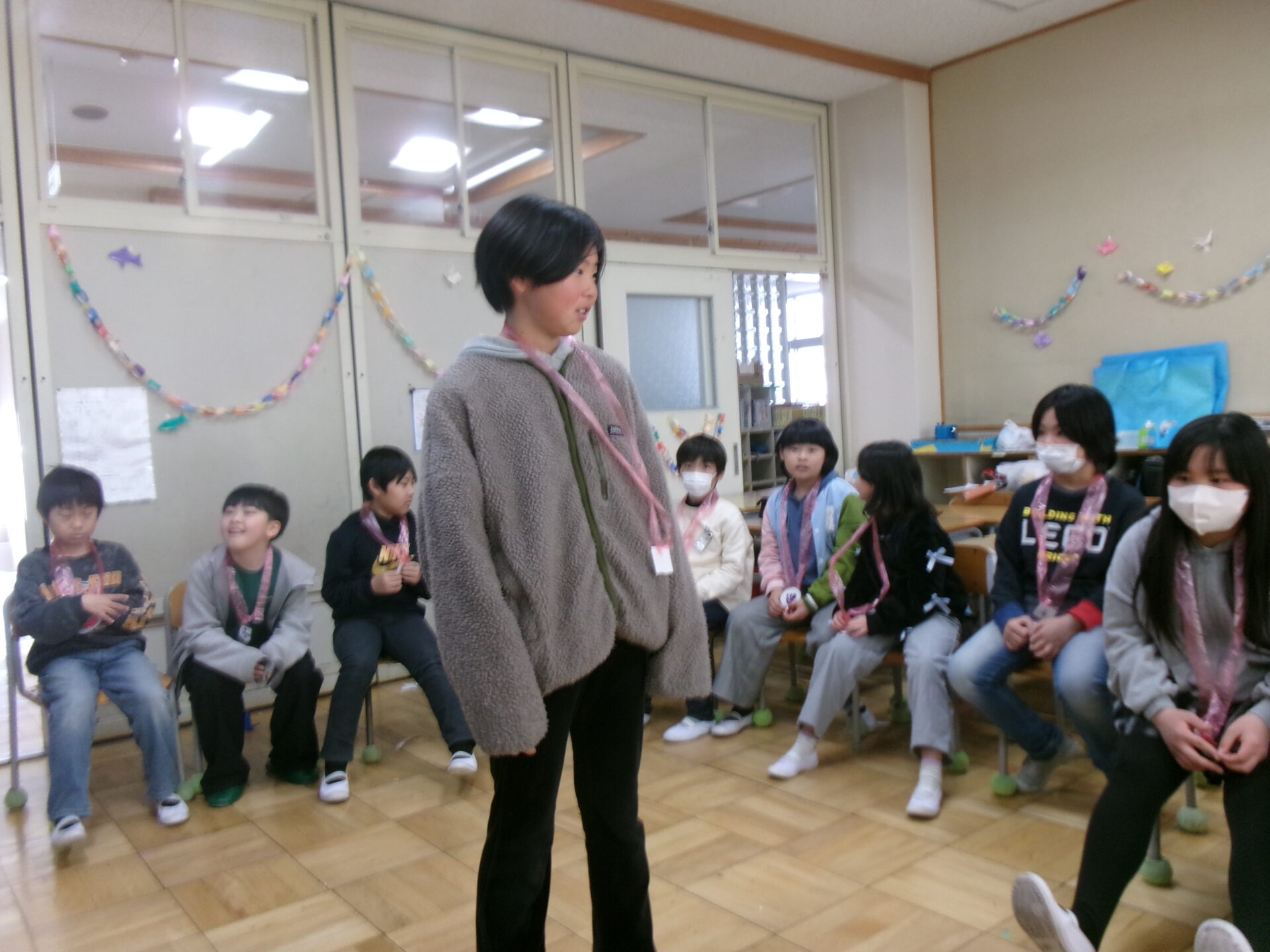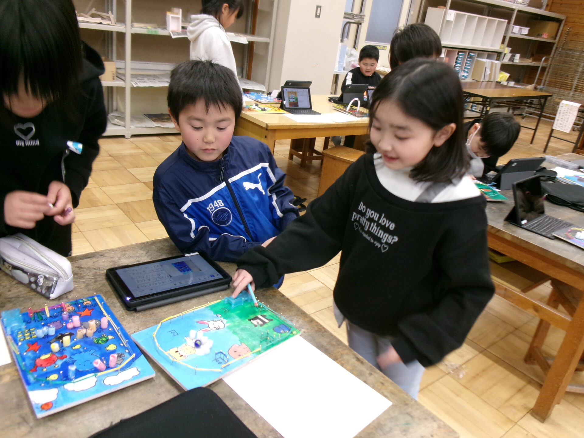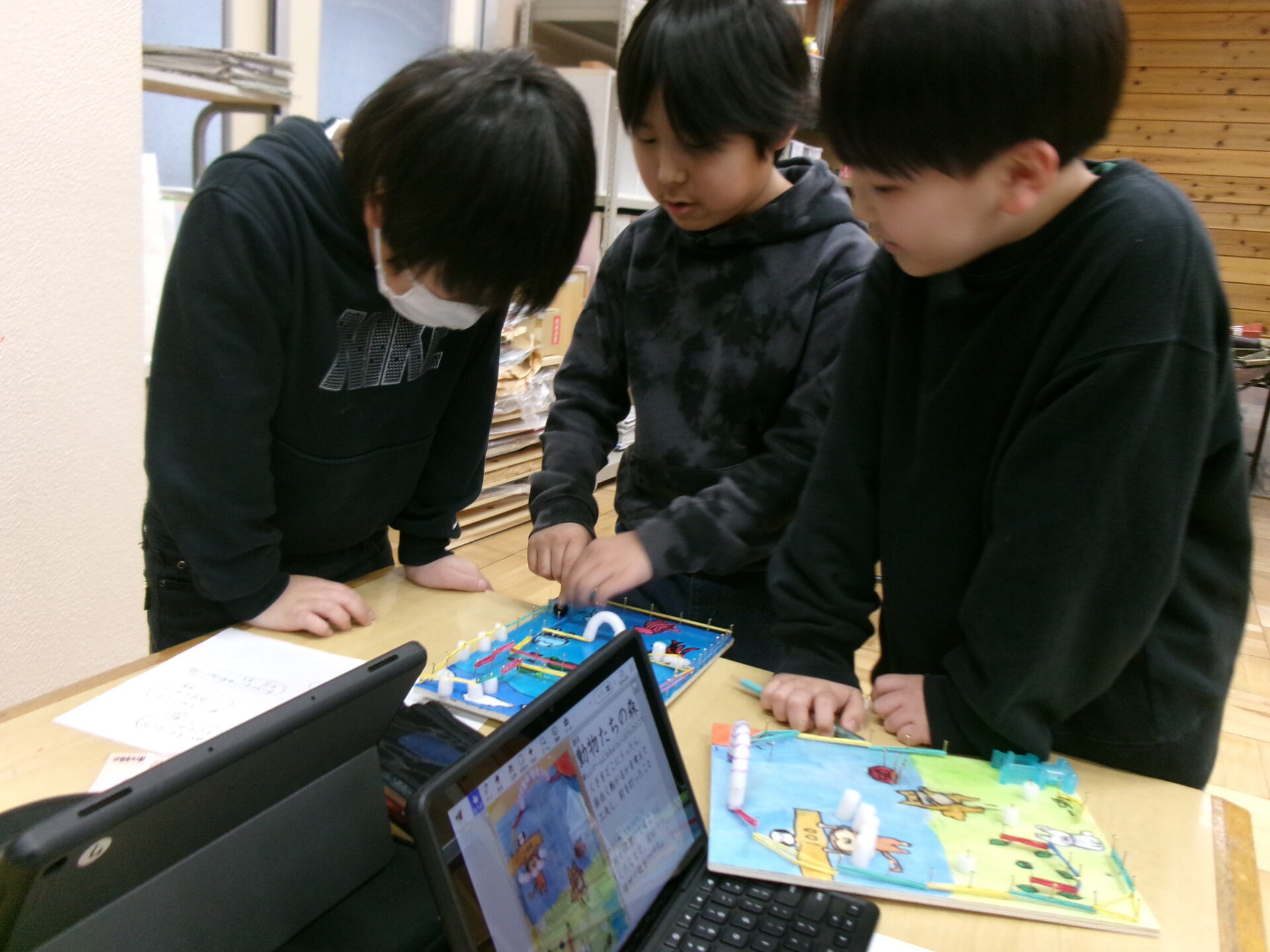 図工で作った作品を使って、みんなで遊びました。